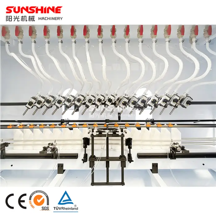 The machine can be equipped with 6 to 20 filling heads, allowing for flexible production capacities.