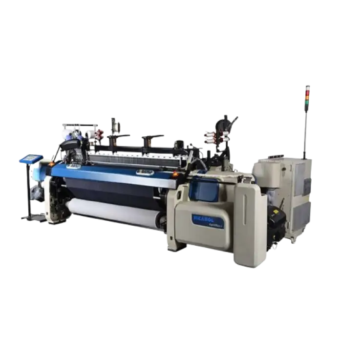 The machine uses advanced computerized controls that allow for high precision in the weaving process, resulting in superior quality fabrics.