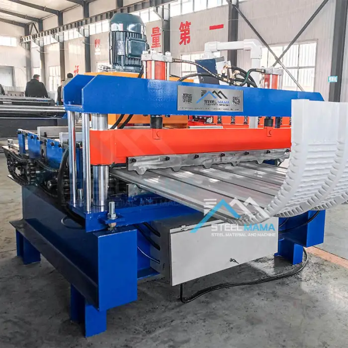 The machine is suitable for manufacturing metal roofing sheets, producing crimped roof panels for residential or commercial buildings, and facilitating large-scale roofing projects.