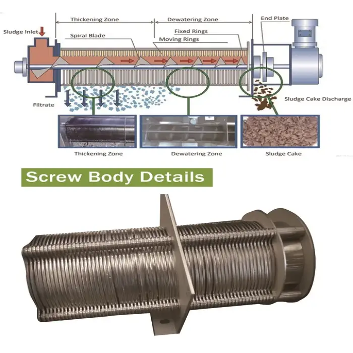 It is an automated volute-type dewatering press designed to remove excess water from sludge generated in industrial and municipal wastewater treatment, producing a drier, more easily handled sludge cake while occupying a small floor area.