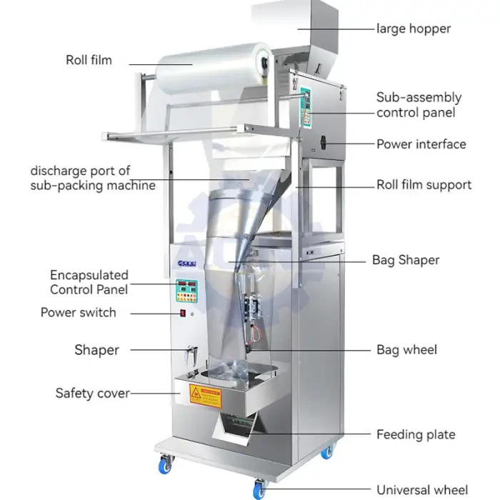 This machine is beneficial for industries in food production, snack manufacturing, and any businesses involved in packaging snack foods.