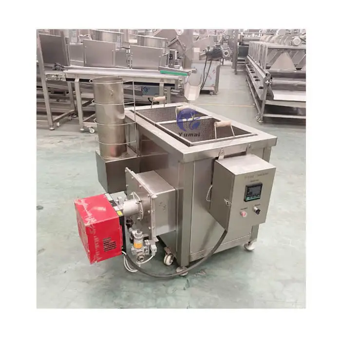 The fryer has a 50 L batch capacity suitable for small-scale production of tofu, falafel, cashew nuts and similar snacks.