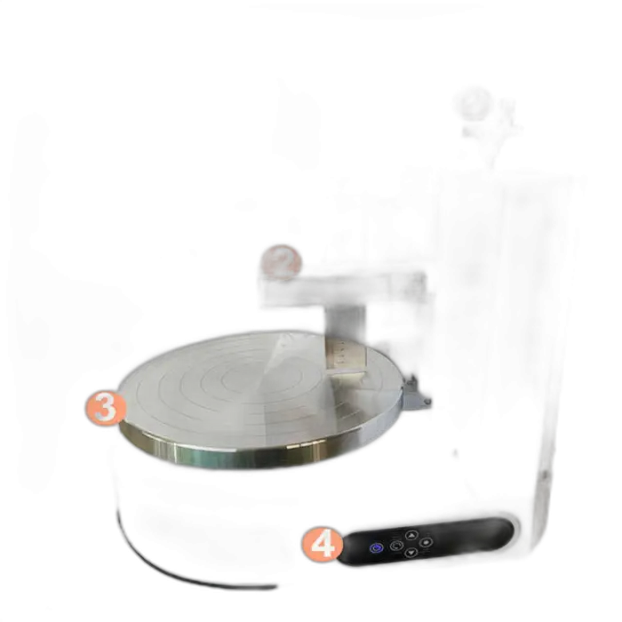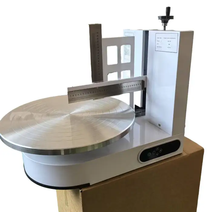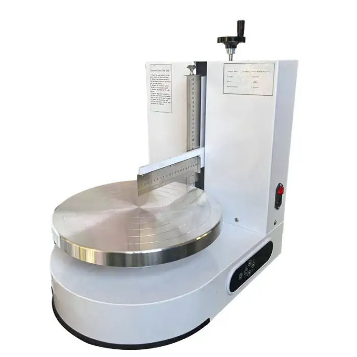 The machine supports cakes from 4 inches up to 18 inches in diameter.