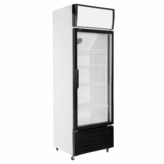 This is a single-temperature upright display fridge with a mechanical temperature controller.