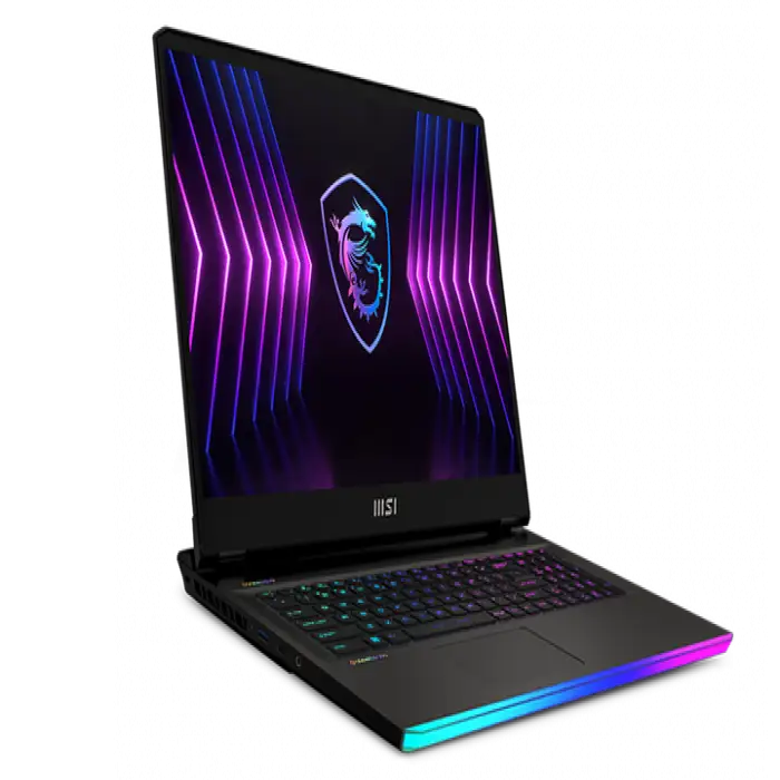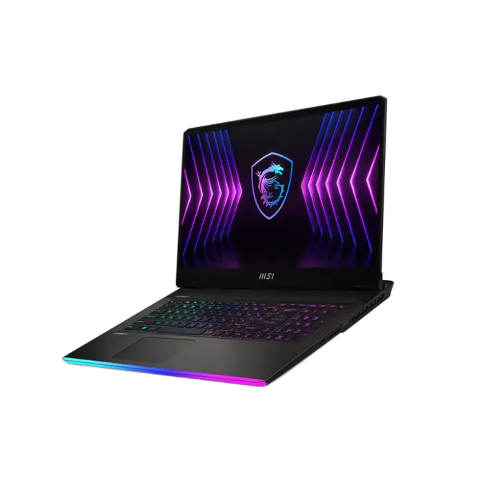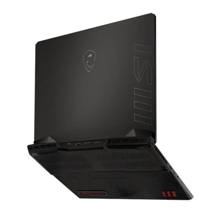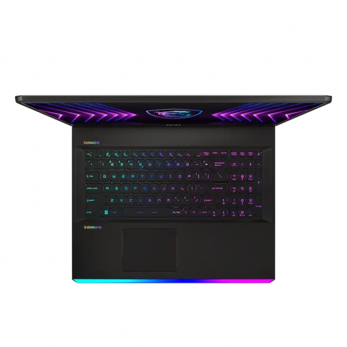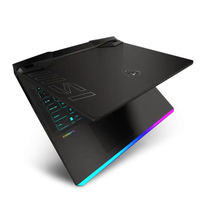 The laptop features a per-key RGB keyboard. Customization and macros are typically available through MSI’s bundled software (such as MSI Center or SteelSeries Engine where applicable), but exact features depend on the software installed for your configuration.