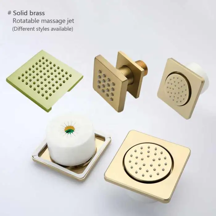 The shower head features an elegant brushed gold finish that adds a modern touch to any bathroom.