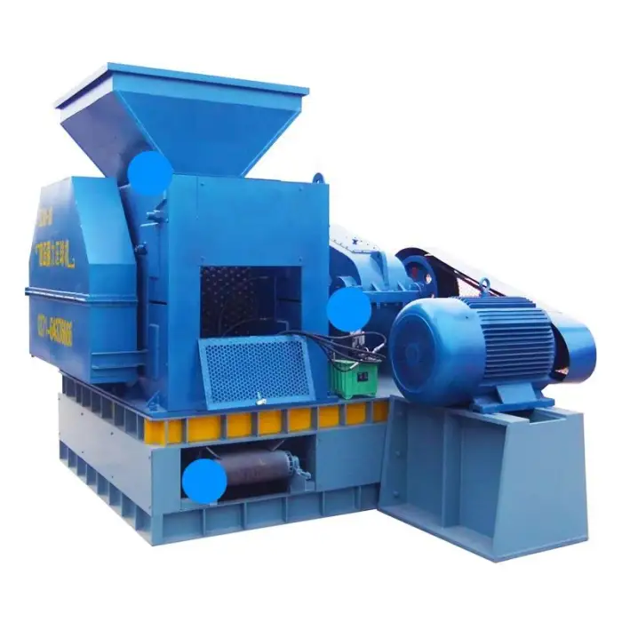 The machine can process various raw materials including coal, charcoal, iron, and mineral powder.