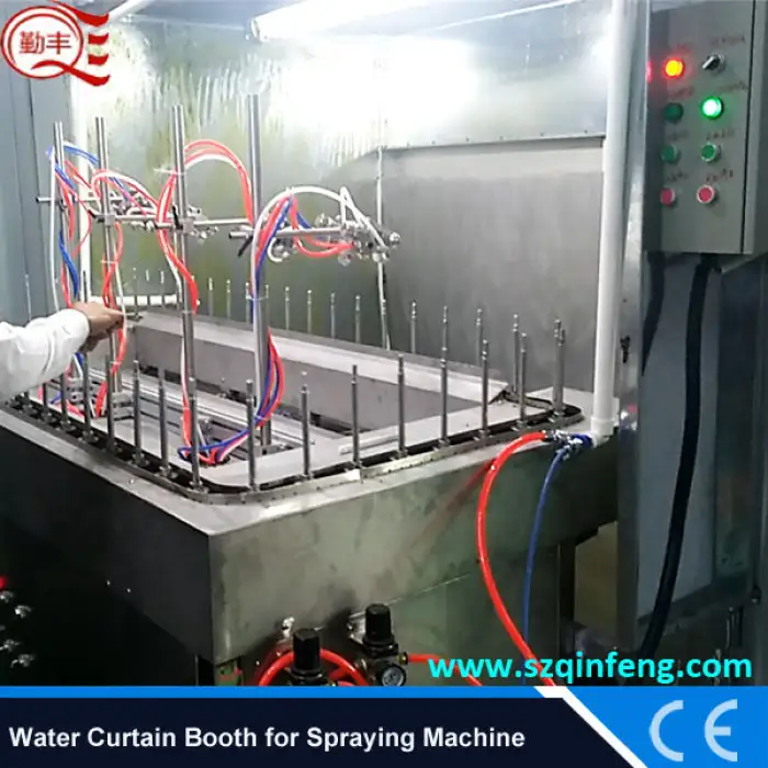 The spray booth operates on a three-phase 380V, 50HZ power supply.