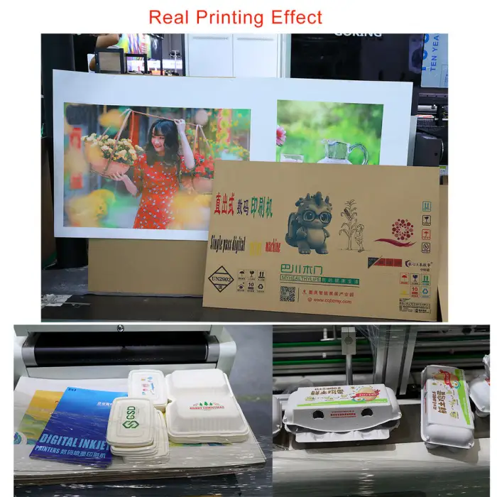 This printer is suitable for various industries, including advertising, packaging, and custom printing for products.