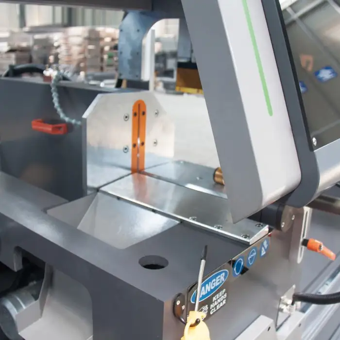 This machine is specifically designed to cut aluminum and UPVC profiles.
