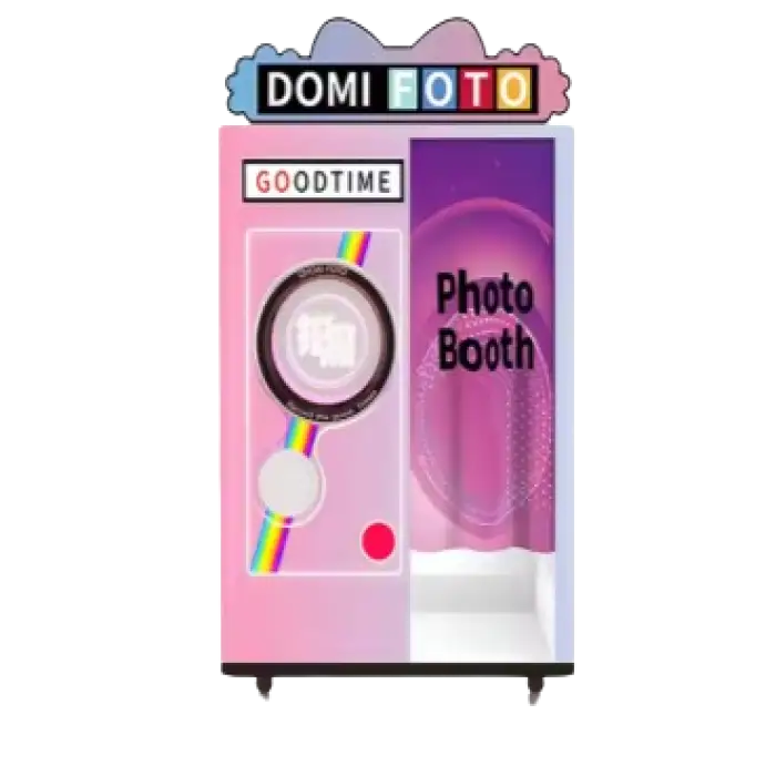 The photo booth is constructed from sturdy metal sheet material, ensuring durability and a professional appearance.