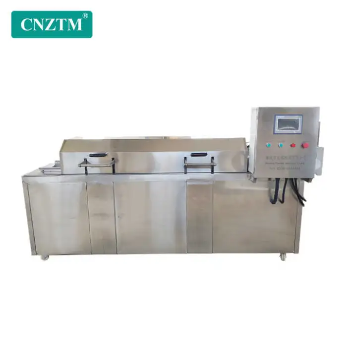 The fryer includes key components such as a gear system and a touch screen for easy operation.