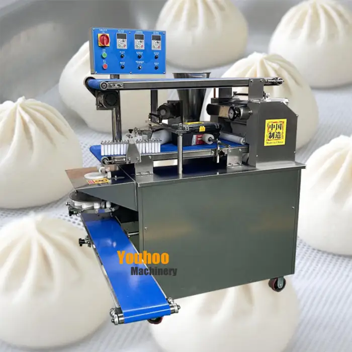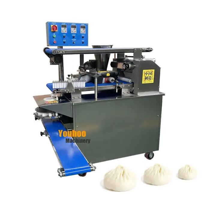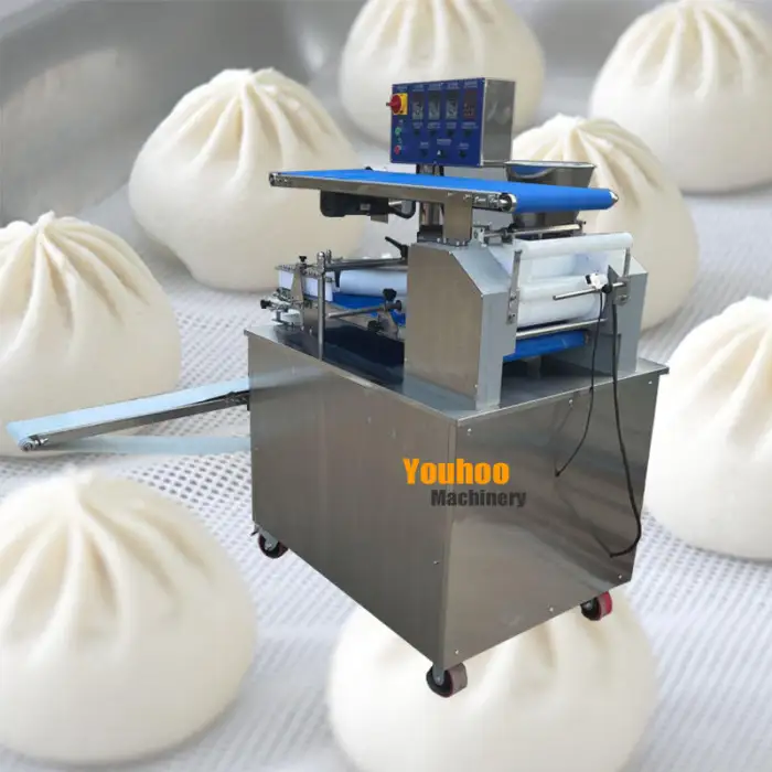 Key features include high production capacity, automatic operation, adjustable bun weight, durable stainless steel construction, and a one-year warranty.