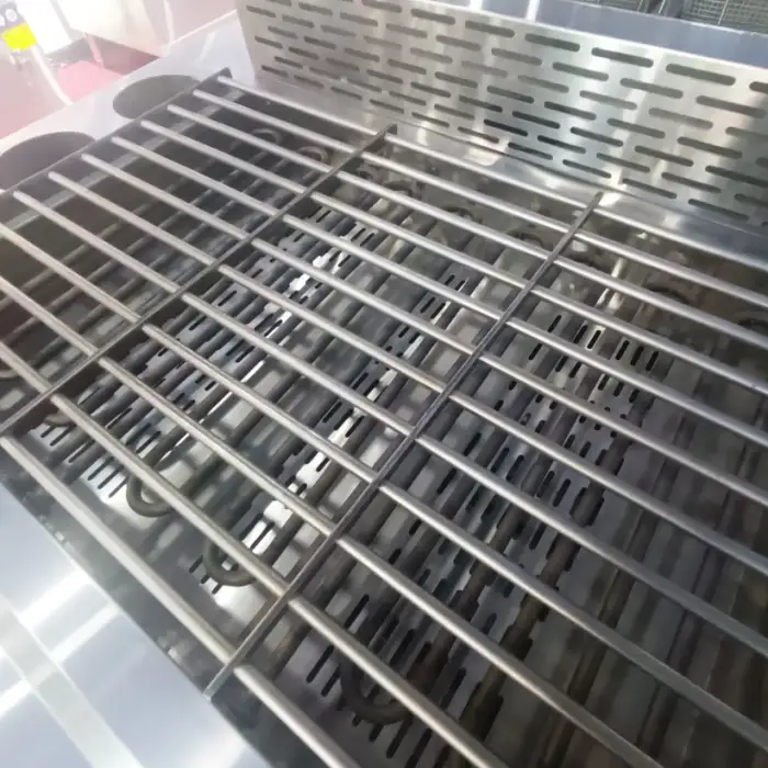 The grill is designed for efficient and even heat distribution, ensuring uniform cooking without cold spots.