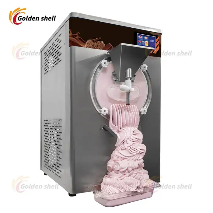 This machine produces hard ice cream, ideal for various business applications.