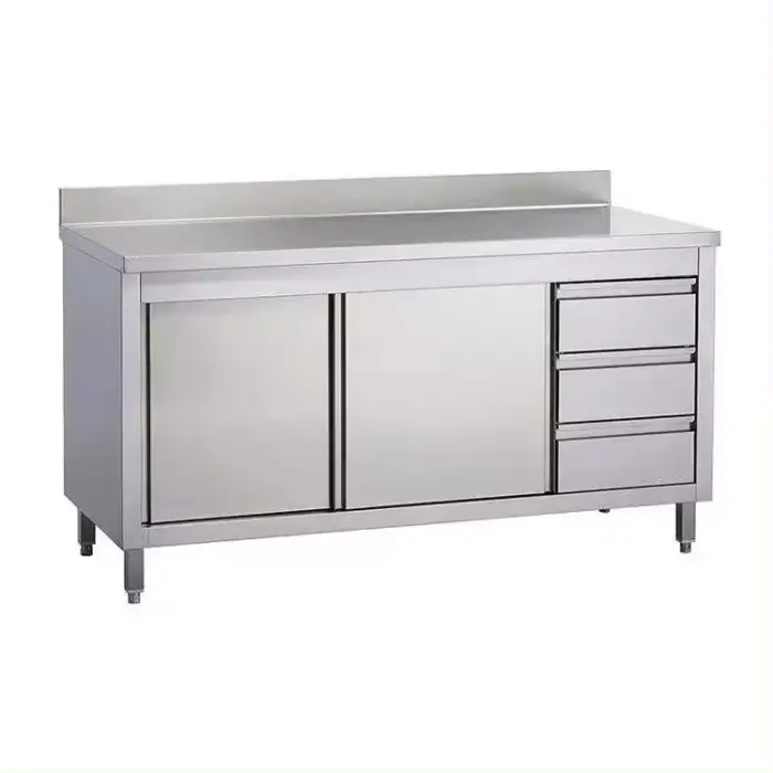 While designed for commercial use, the cabinet can also be used in a home kitchen if you need ample storage and a sturdy workbench.