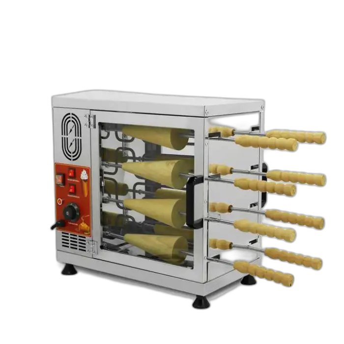 Typical raw materials include milk, flour and dough-based recipes suitable for chimney cakes. Exact recipes and ingredient ratios will affect baking time and final texture.