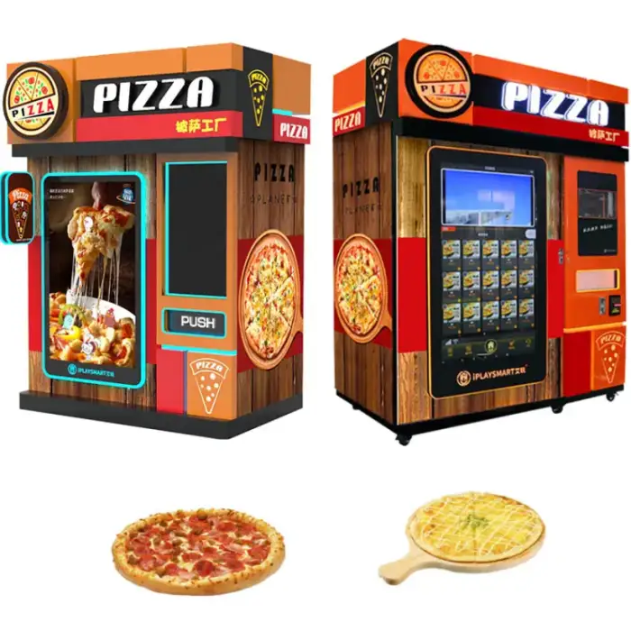 The vending machine offers a variety of pizzas, ensuring customers have multiple options to satisfy their cravings.