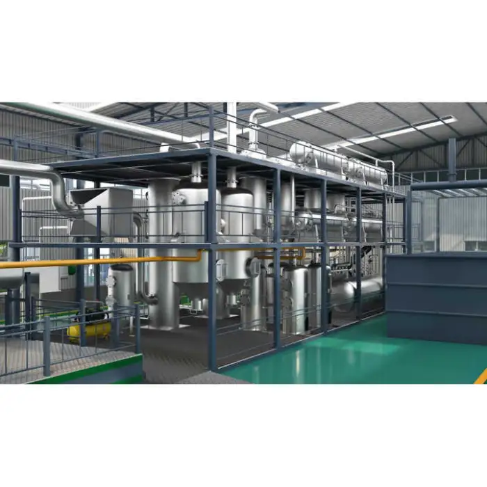 The distillation plant can process various types of waste oils, including waste oil, pyrolytic oil, waste lubricating oil, crude oil, liquid oil, heavy oil, thermal oil, gear oil, and naphtha.