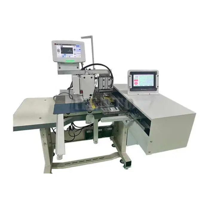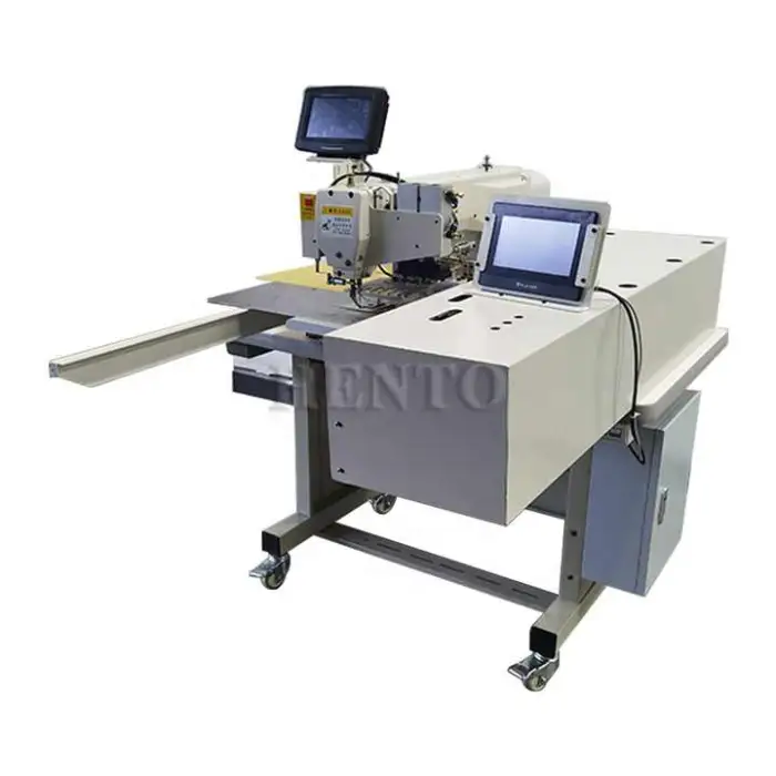 The Curtain Automatic Machine features a manual feed mechanism, providing control over fabric placement during sewing.