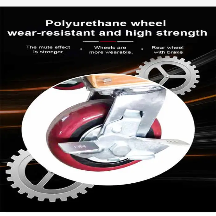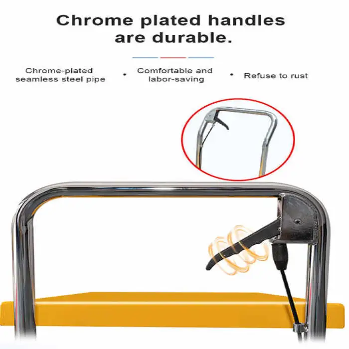 The hydraulic lifting mechanism uses fluid pressure to lift heavy loads smoothly and safely, allowing for efficient manual operation.