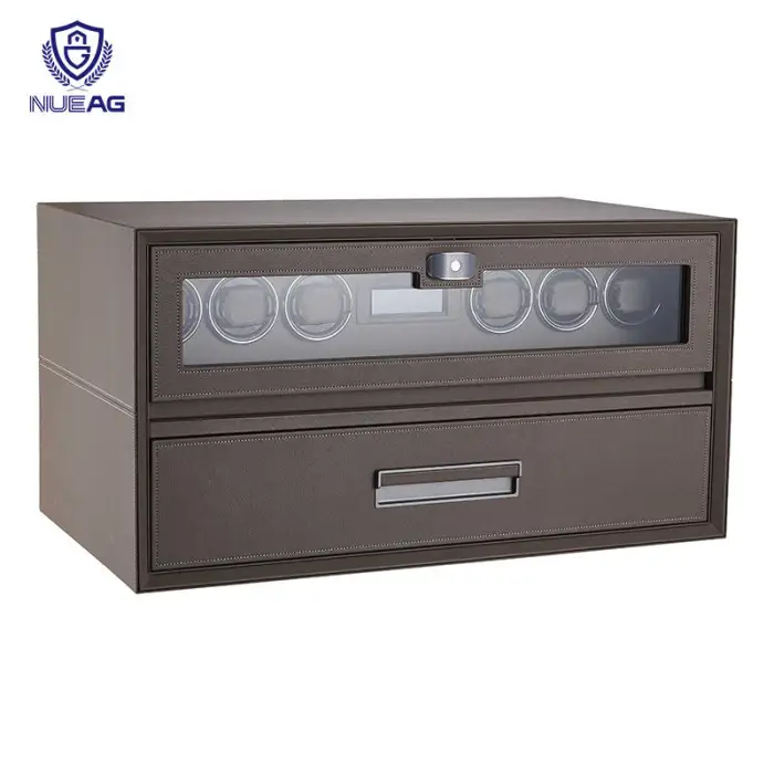 The watch winder box offers advanced security features, including fingerprint unlock and a digital password lock.
