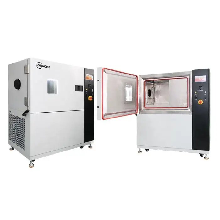 The test chamber includes safety features such as over-temperature protection and a robust construction to ensure safe operation during testing.