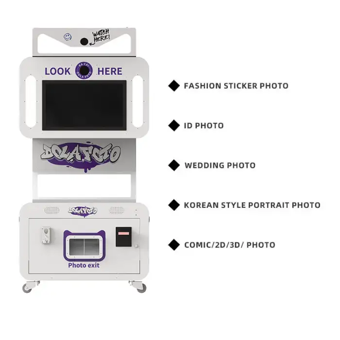 The Customize Camera Photo Booth features a 21.5 inch screen with a high-definition 1080P resolution for clear and vibrant images.