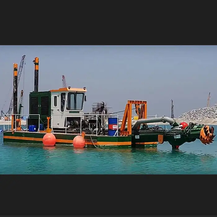 The dredger offers customizable options such as cutter head size, engine power, and control systems to fit specific mining needs.