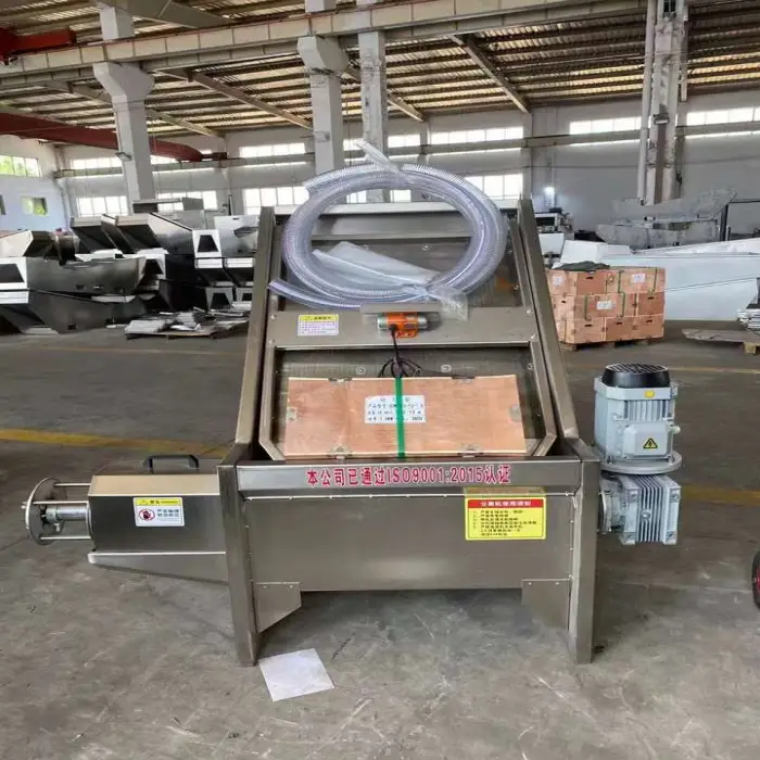 Final solids content varies with feed characteristics and screening options. The machine significantly reduces waste volume and produces a drier cake suitable for handling or composting; exact dryness is determined via sample tests provided in the machinery test report.