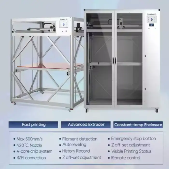 The Dowell High-Speed Large 3D Printer has a maximum print size of 1000mm x 1400mm x 1000mm, making it ideal for large sculptures, furniture, and auto parts.
