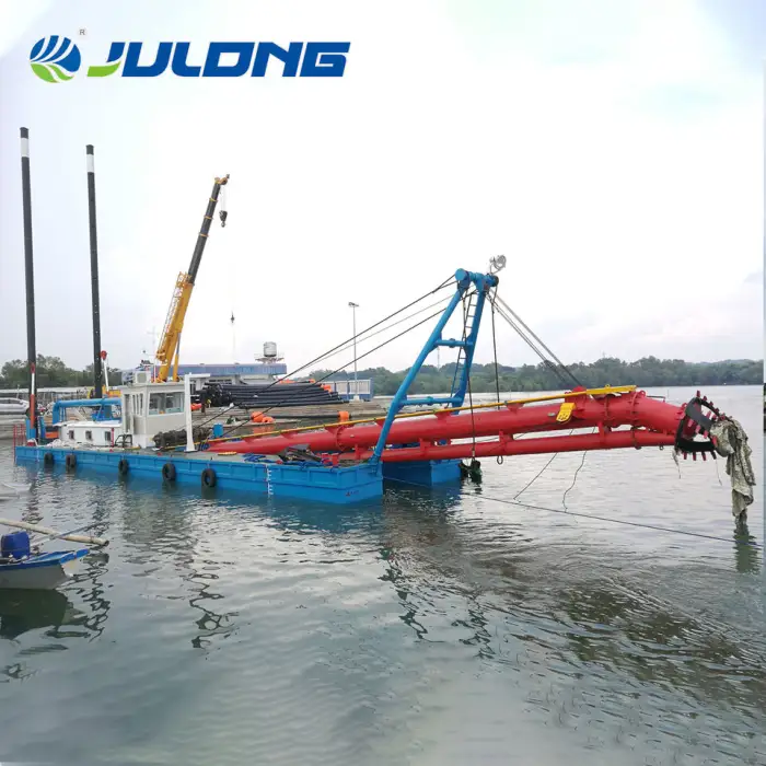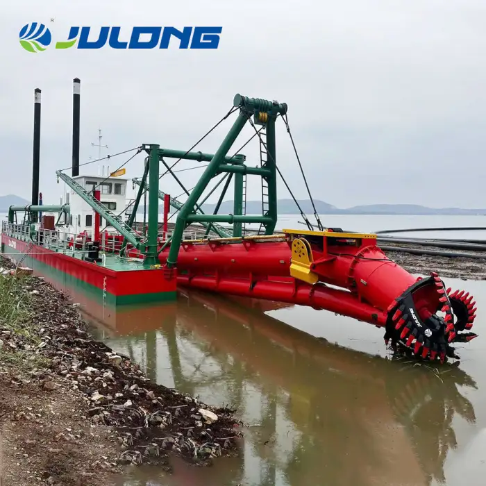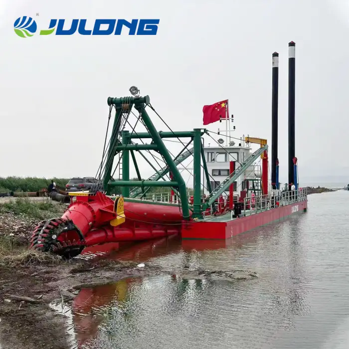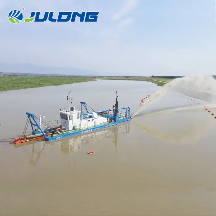 The dredger is designed to efficiently dredge sand, mud, and other materials from various water bodies.