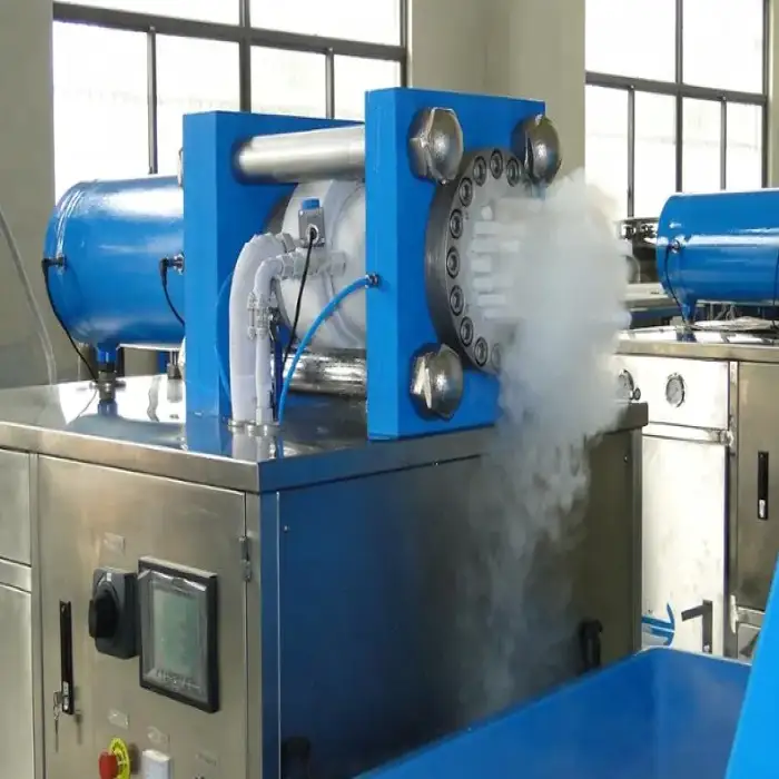 The Dry Ice Blasting Machine can produce up to 100 kg of dry ice per hour.