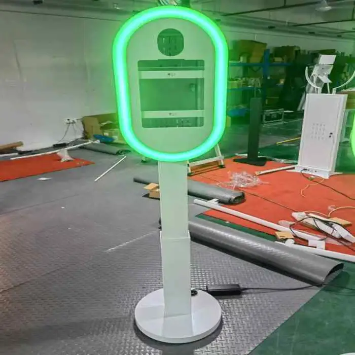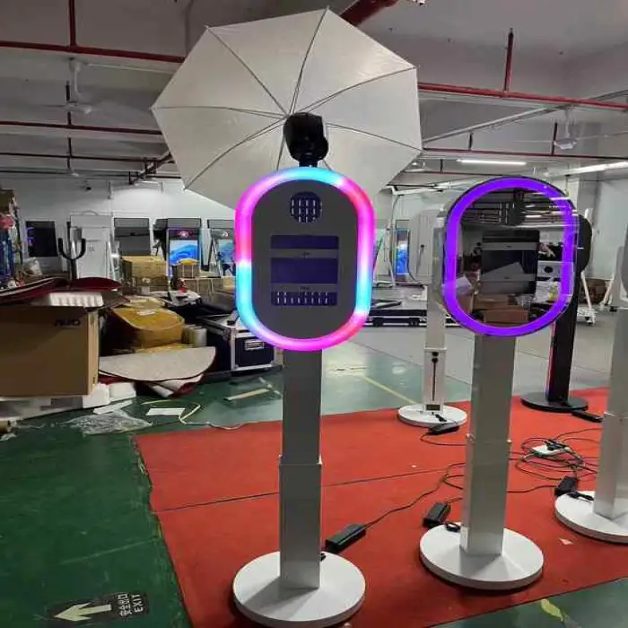 The photo booth is constructed from solid full metal, ensuring durability and stability.