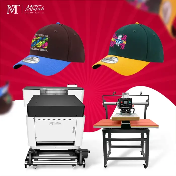 Basic workflow: 1) Print full‑color design onto PET transfer film using pigment inks; 2) Pass wet prints through the powder shaker to apply adhesive powder; 3) Cure/dry the powder (hot air oven/curing unit) so it melts and bonds to the ink; 4) Transfer the image from film to fabric using a heat press; 5) Peel the film (hot or cold depending on film/instructions) and finish.