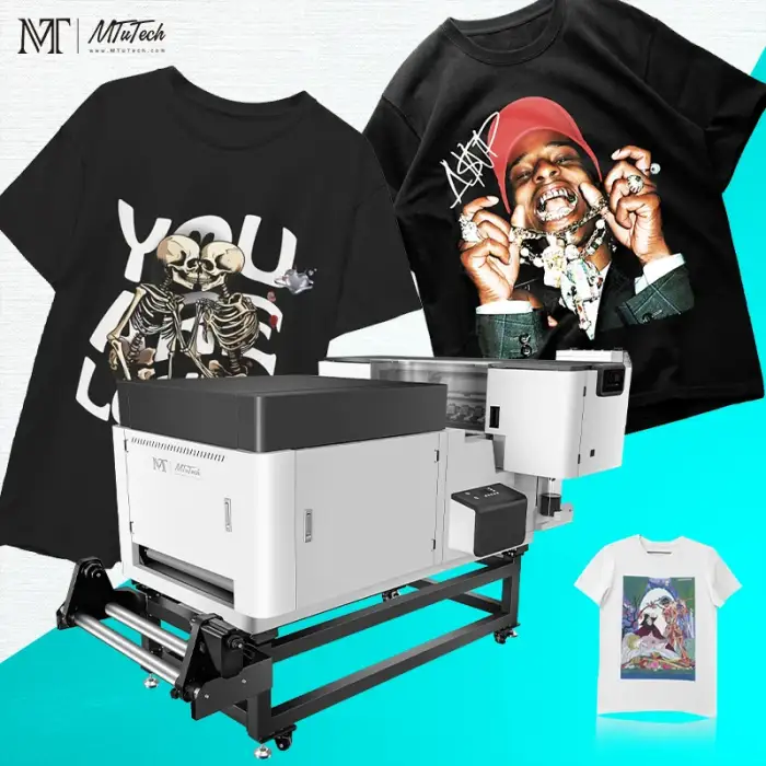Consumables include DTF pigment inks (CMYK + white where applicable), PET transfer film, adhesive powder, and cleaning solutions/spare parts (maintenance cartridges, capping station items). Use inks and powders specified or recommended by your supplier for best results; third‑party options exist but may affect warranty and color consistency.