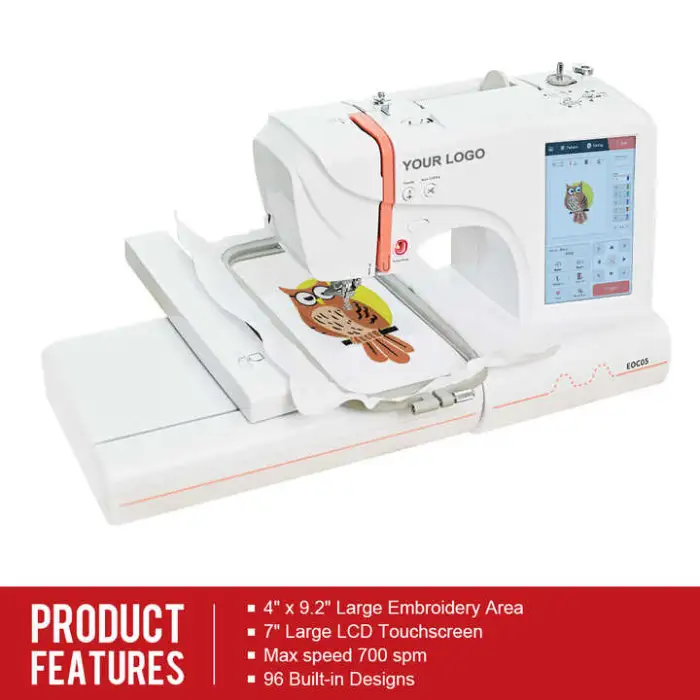 The EOC05 Multifunction Household Small Computerized T-Shirt Professional Embroidery Making Machine has a maximum embroidery speed of up to 700 RPM.