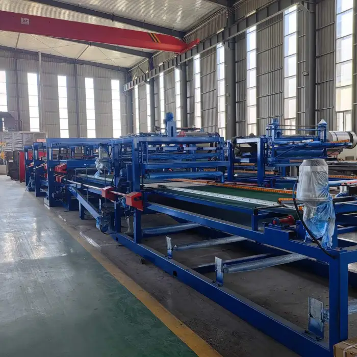 The machine incorporates advanced technology and robust components, which together enhance the efficiency of sandwich panel production.