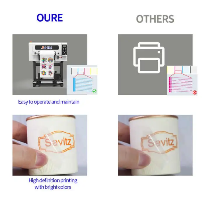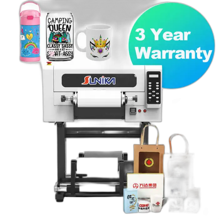 This printer is designed for producing high-quality custom prints such as stickers, phone-case transfers, labels, cards, small wallpaper samples and other personalized items using UV-curable inks and PET/AB transfer film.