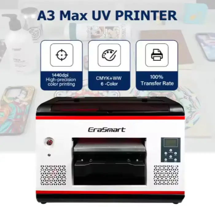 The printer uses UV ink with an ink consumption rate of 10ml per square meter.