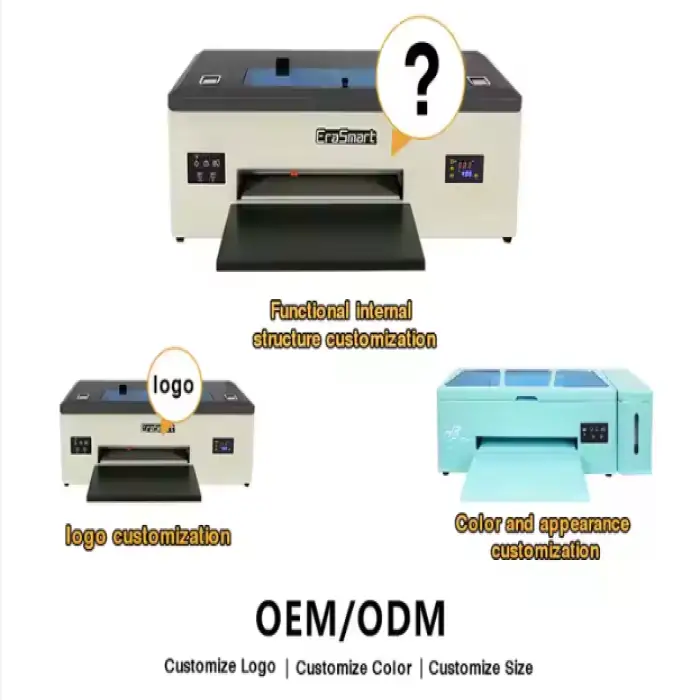 The EraSmart XP600 DTF Printer can print A3 (300x420mm), A4, and 297mm x 210mm sizes, making it versatile for various custom t-shirt designs and other apparel.