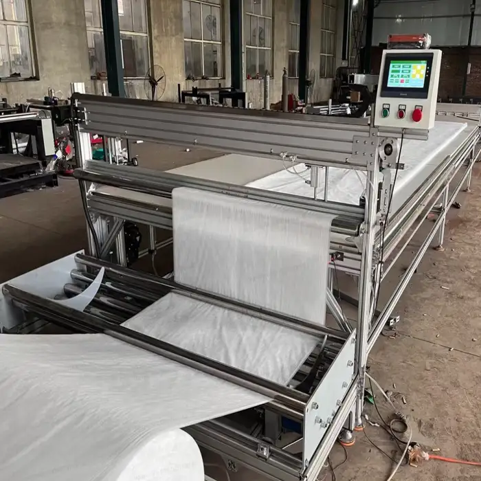 The machine is specifically designed for cutting non-woven fabrics, making it ideal for garment manufacturing and other textile applications.