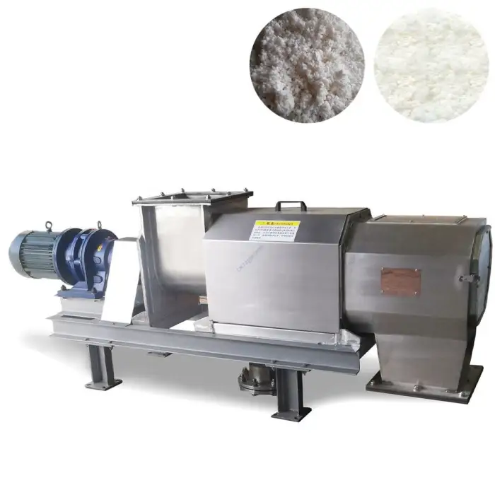 The machine is constructed primarily from durable stainless steel for parts that contact the material, while the sewage pump is made of carbon steel.