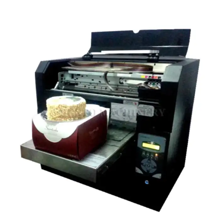 The Fast Cake Printing Speed Machine can print on a variety of food items including cakes, bread, biscuits, macaroons, and more.