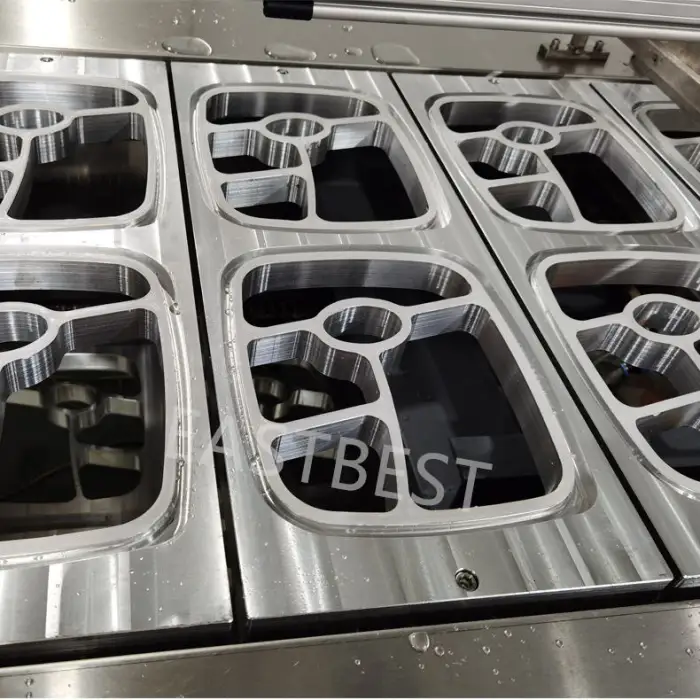 This machine is designed to seal a variety of food trays, including plastic and composite material trays.
