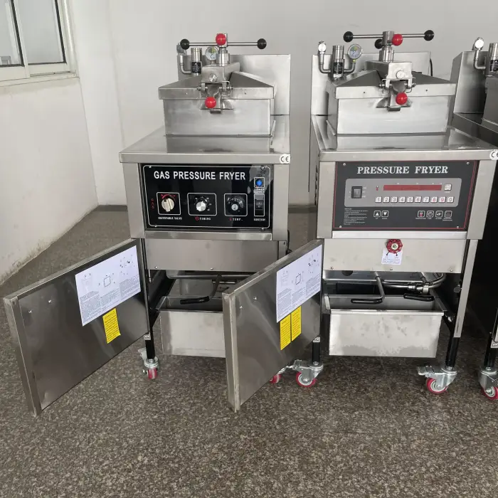 This product is marketed as a broaster/pressure fryer. Pressure fryers must be operated according to the manufacturerβs safety instructions. Ensure regular maintenance of seals, safety valves and follow operator training to prevent hazards.