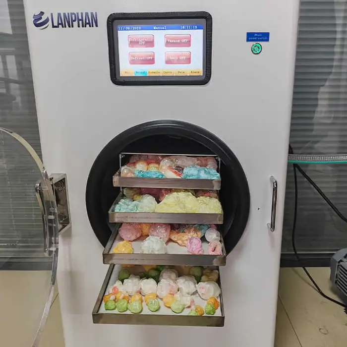The handling capacity of this freeze dryer is between 4 to 8 kilograms per batch.