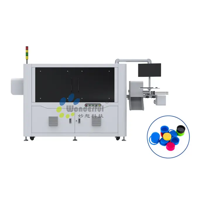 The machine utilizes high-quality visual inspection technology to accurately assess the quality of plastic bottle caps.