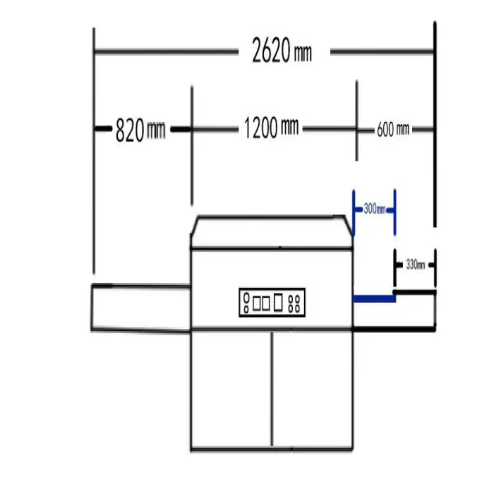 The machine weighs 550 kg and has a compact design suitable for garment shops.