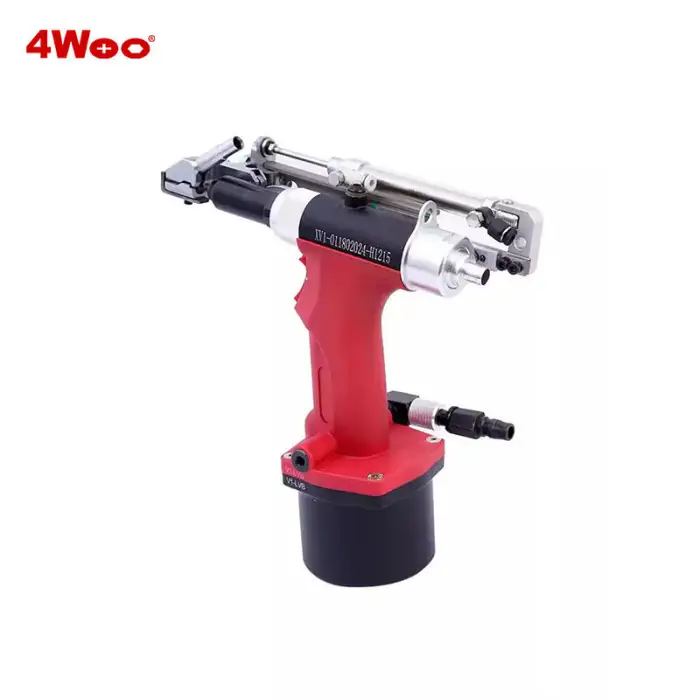 This riveting tool uses a pneumatic power source for energy efficiency.